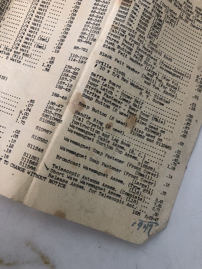 đài ZENITH sản xuất 22/2 /1947
