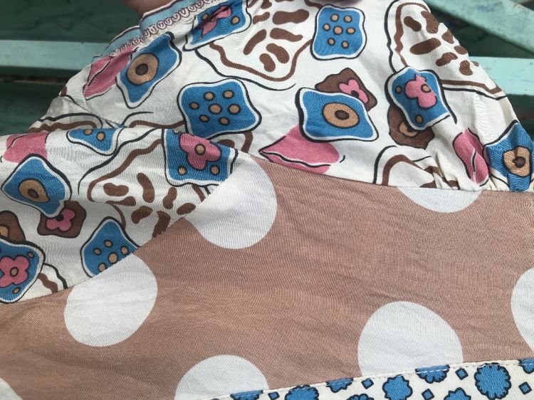 Gl ce em đầm vintage làm bằng lụa của châu âu . Mềm mịn và rất mát . Hoạ tiết vintage rất tây và sang . Size eu 36