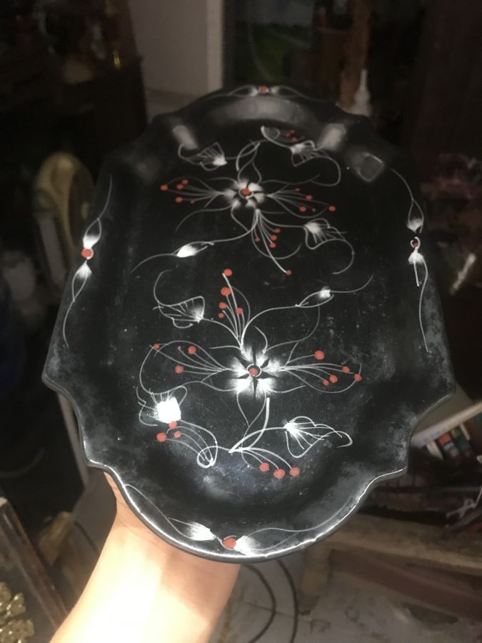 bao ship Dầm trà bát tràng cũ khoảng năm 1999. Vẽ hoa phù dung rất ảo diệu. Kích thước 18cm x 29cm. Màu đen huyền. Nước men còn bóng khỏe. Lành đẹp.