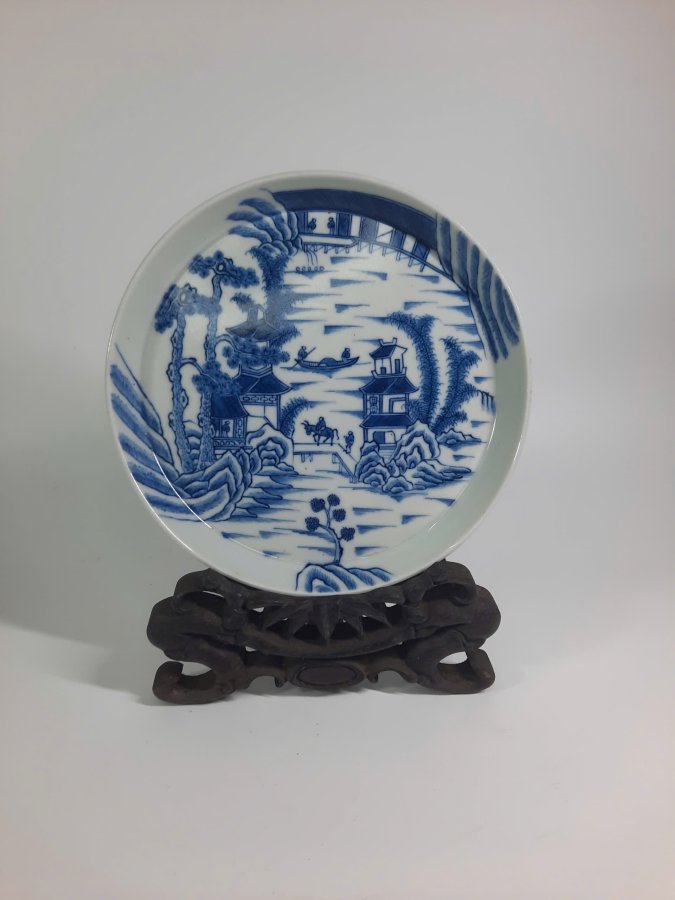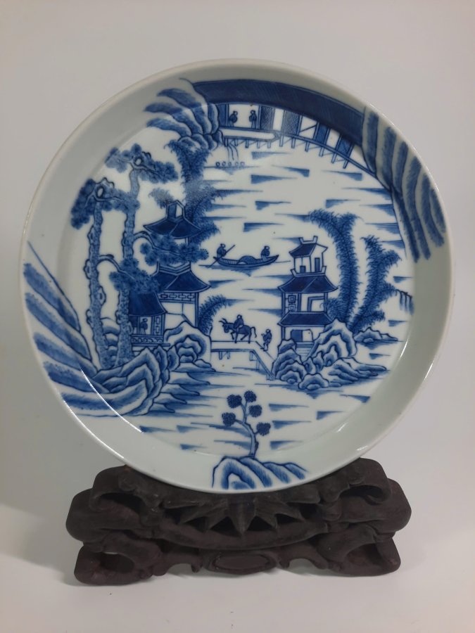 Dầm trà vẽ đề tài Thiên hạ thái bình, chàm men lạc tinh, hiệu ngoạn ngọc