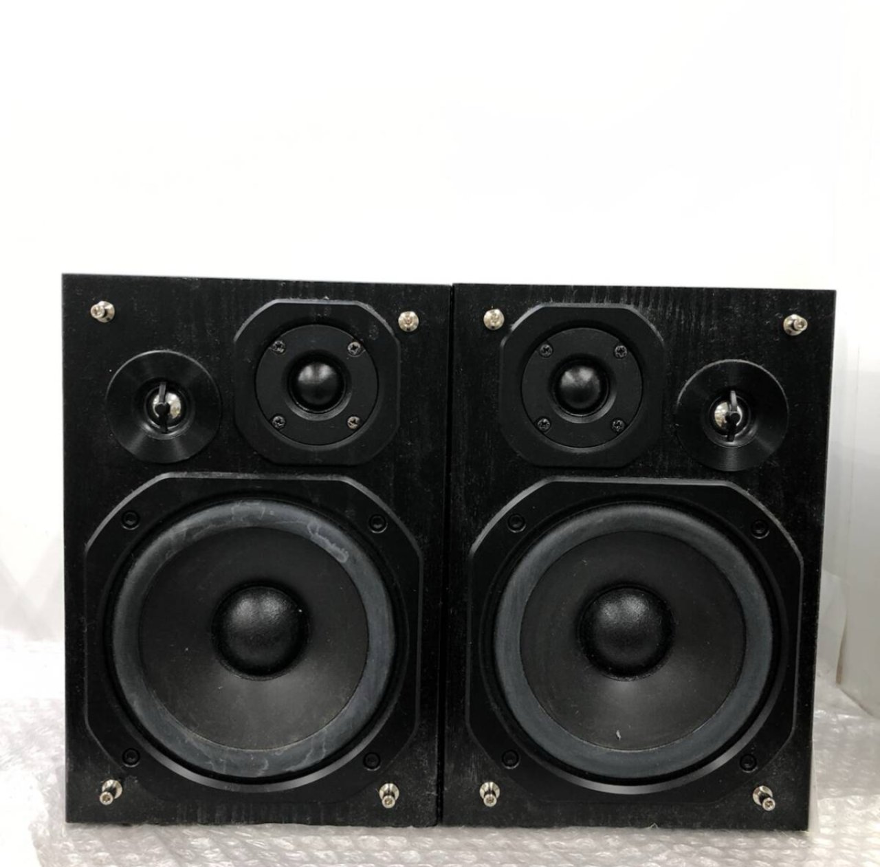 • Phần viền gỗ phía trên loa có chỗ lớp veneer bong, không ảnh hưởng chất lượng, có thể dán lại nếu muốn hoàn hảo hơn