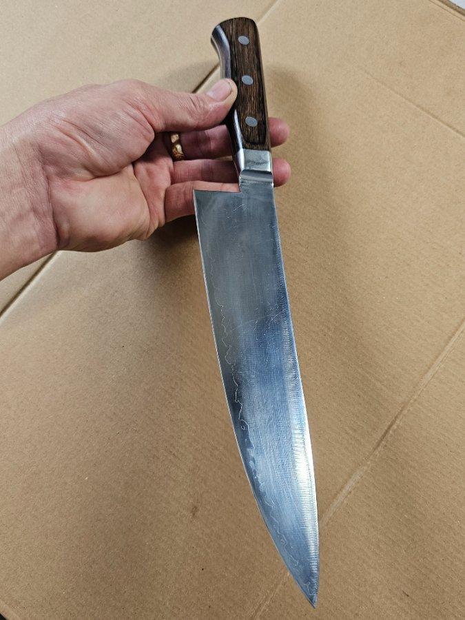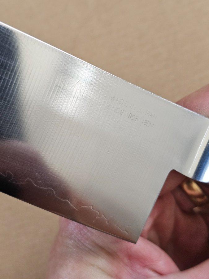 Dao bếp made in Japan thép 3 lớp không rỉ lưỡi zanmai lượn sóng rất đẹp dài 33cm dầy 1,9mm