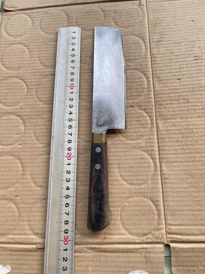 Sản phẩm còn lành nguyên chưa dọn lại. Dao 3 lớp thép, chữ khắc thủ công, cán gỗ khâu kẹp đồng thau ít gặp. Sản phẩm được làm rất chất lượng, các chi tiết ghép nối rất hoàn hảo. Cám ơn đã xem tin.