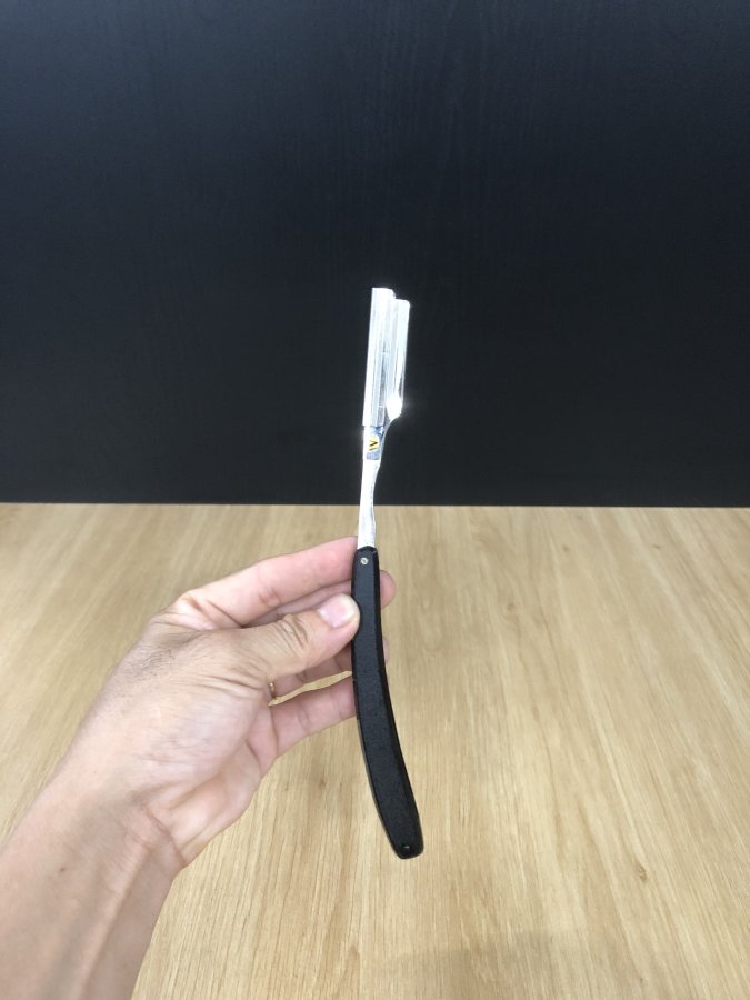 Dao cạo còn rất mới,sử dụng lưỡi lam bẻ đôi gắn vào sử dụng,hàng rất thích hợp cho anh chị làm thợ cắt tóc mua sử dụng.Cảm ơn đã xem tin