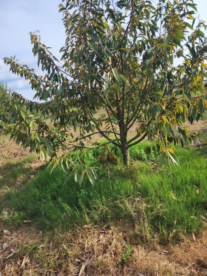 - Trên đất đang trồng sẵn 300 cây sầu riêng năm thứ 4, sang năm bắt đầu được thu hoạch, hệ thống phun tưới tiêu đầy đủ
