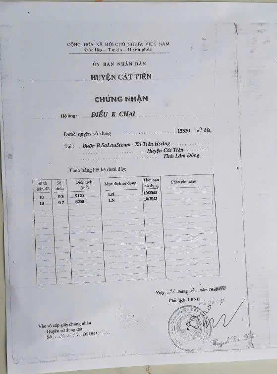 ĐẤT ĐẸP - CHÍNH CHỦ BÁN ĐẤT Tại Buôn B.salousieum, Xã Tiên Hoàng, Cát Tiên, Lâm Đồng