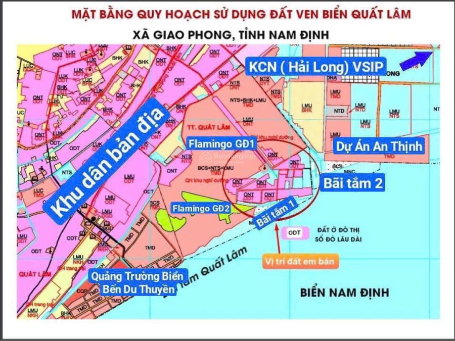 - Hàng F0, giai đoạn đầu các dự án Flamingo, Quảng trường Biển, Khu Du lịch Sinh thái An Thịnh, Khu công Nghiệp VSIP, đường cao tốc nối Nam ĐỊnh – Quất Lâm mới đang triển khai nên giá đất chưa cao