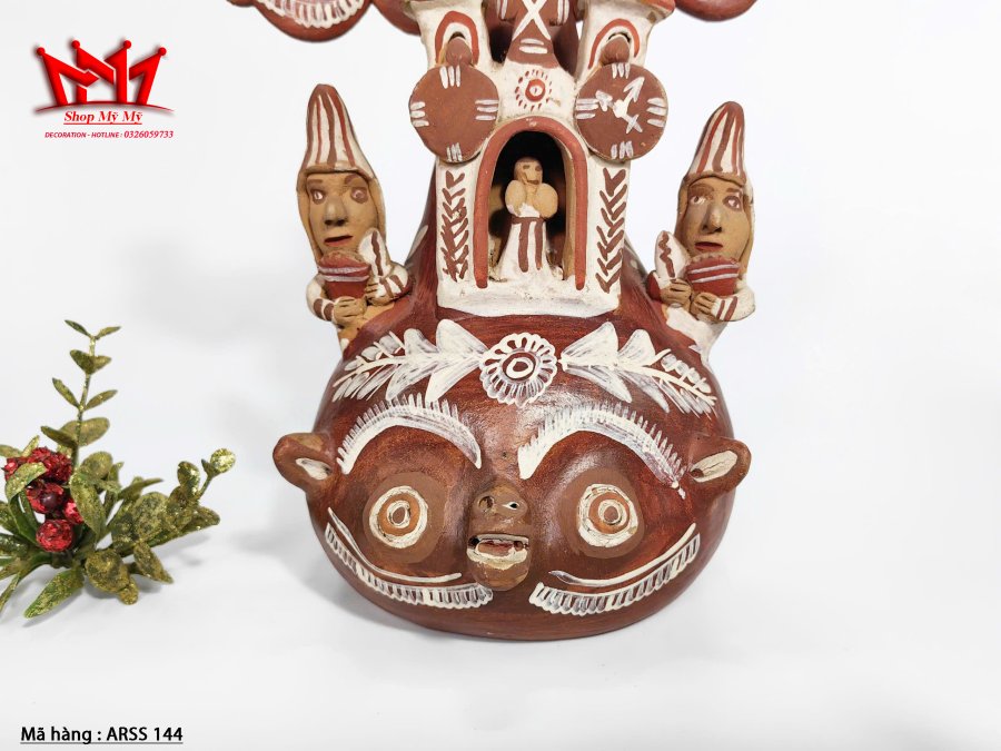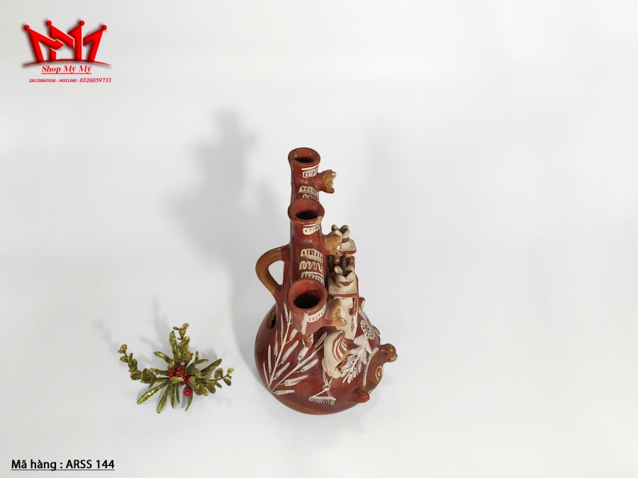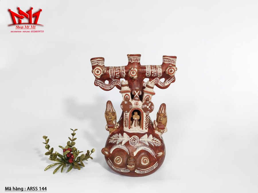 Nghệ thuật dân gian Đồ gốm chân nến 3 nhánh.