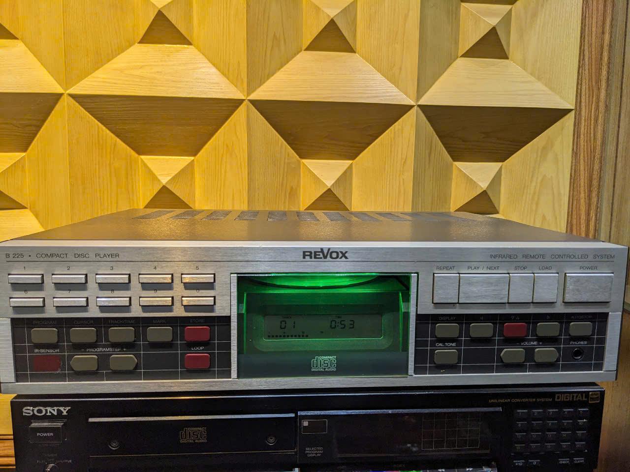 Đầu CD ReVox B225 đẹp, nguyên bản, mắt nhận, đọc nhanh và tốt các loại CD (kể cả phôi Phono R). Máy dùng chip giải mã 1540D tụ gốm được mệnh danh chất âm gần với analog, đĩnh đạc, dày dặn trung thực đến kinh ngạc.