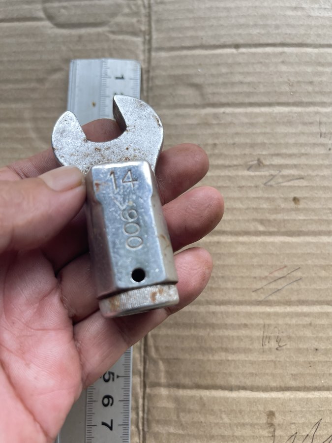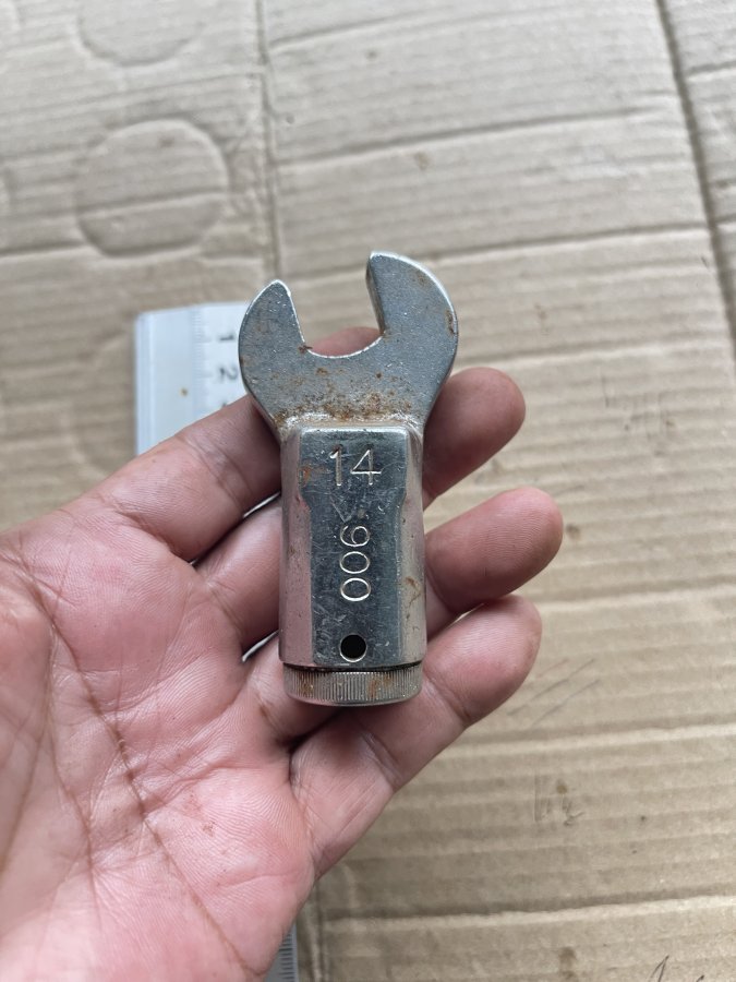 Sản phẩm còn mới chưa qua sử dụng do chưa vệ sinh nên còn dính bụi bẩn. Là đầu cle dùng để thay thế cho cần lực khi dùng. Cám ơn đã xem tin.