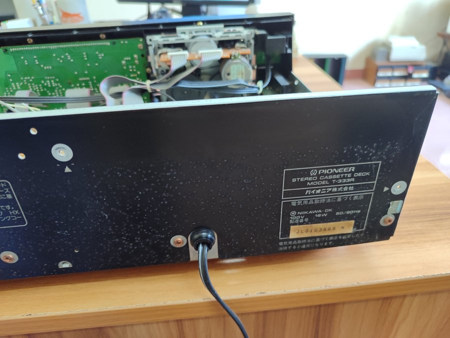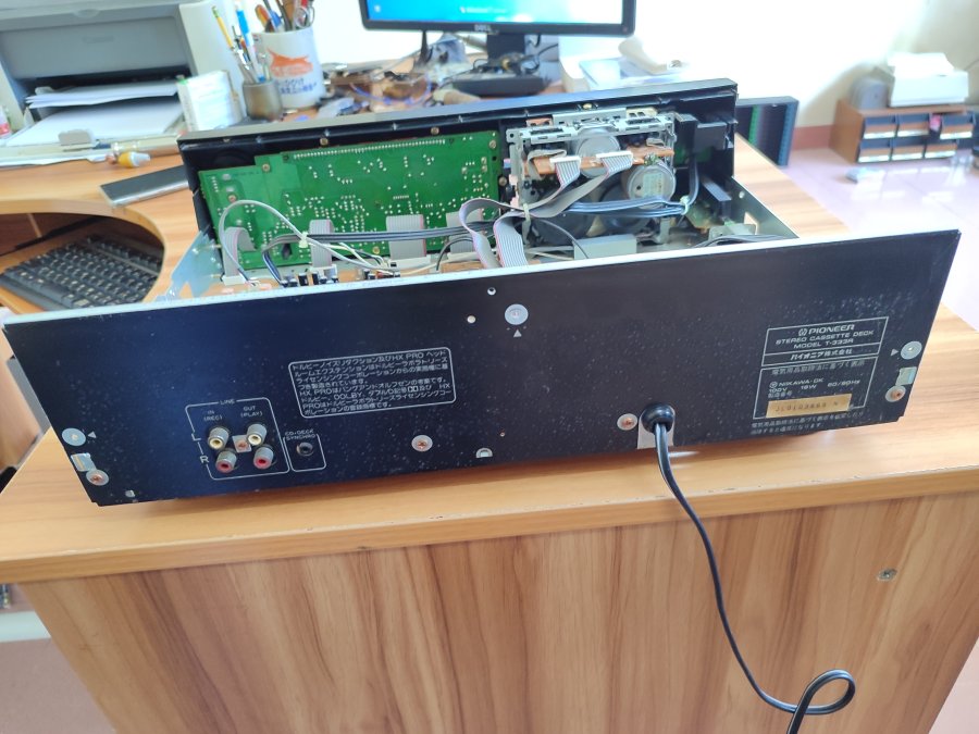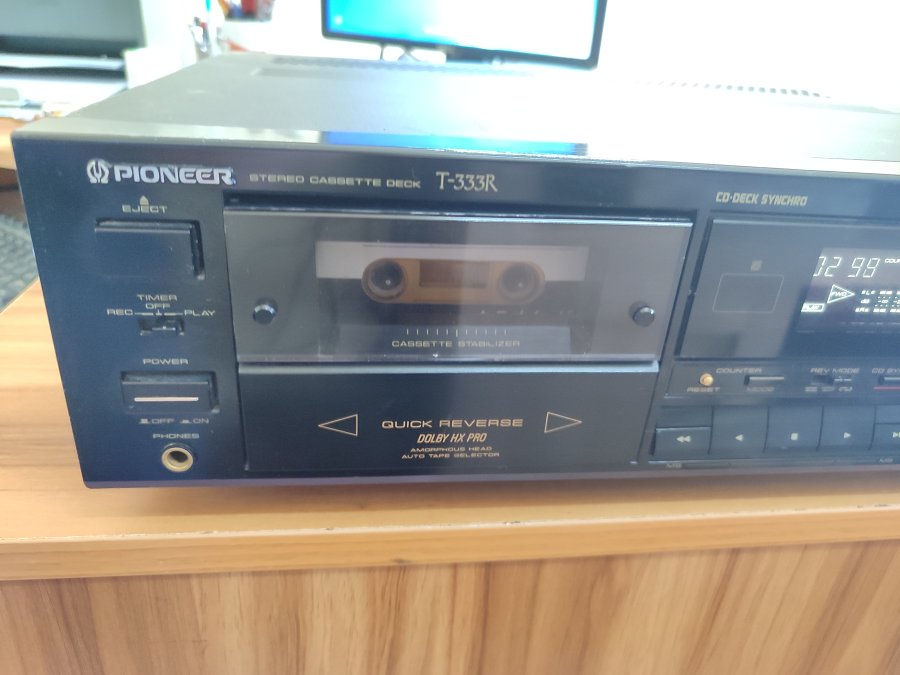 Đầu deck Pioneer T-333R, dùng điện 100V, phát 2 chiều, tự động đảo chiều khi hết băng, chất âm rất hay. Vận chuyển về bị gãy 1 chân nắp cửa băng.