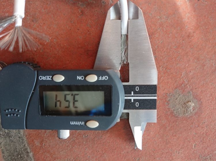 Dây cả vỏ 3,54mm...lõi đồng bao quanh vỏ se lại đo 1,1 ly , Lõi giữa se lại đo 1,1ly như hình chụp