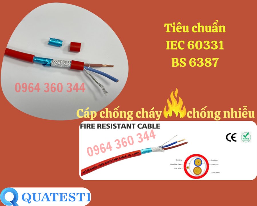 Cáp chống cháy chống nhiễu Altek Kabel đáp ứng đúng tiêu chuẩn chống cháy IEC 60331/BS6387. Đã có giấy kiểm định chất lượng của Quatest 1 dễ dang cho khách hàng khi nghiệm thu, bàn giao dự án, công trình.