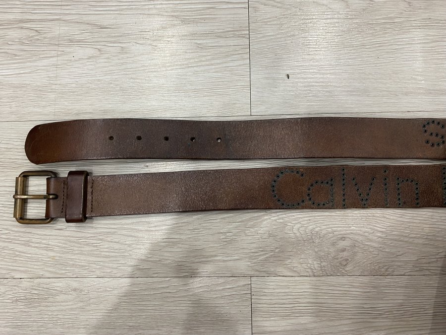 Giá xả 480k ko mặc cả ạ.Dây calvin klein.(nâu)Chính hãng Ý.Mặt đồng.dây da bò tấm.Dài 105cm.Bản 3.8cm.Lỗ 84-94cm dùng tối đa 89cm ở lỗ 3.
