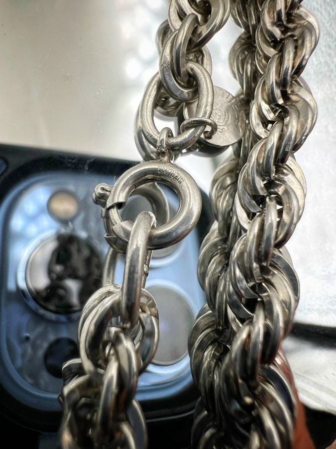 Dây chuyền bạc 925 italy hiệu Tiffany kiểu dây soắn cáp rất đẹp, phôm bự, dây dài 57cm - ngang 6mm, nặng 59.13gram (15.8 chỉ)