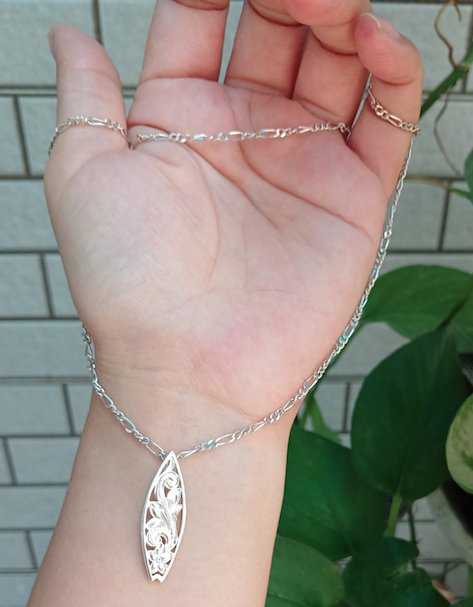 Dây chuyền Nữ Hawaii bạc ngoại, mặt hình chiếc lá hoa văn cực đẹp