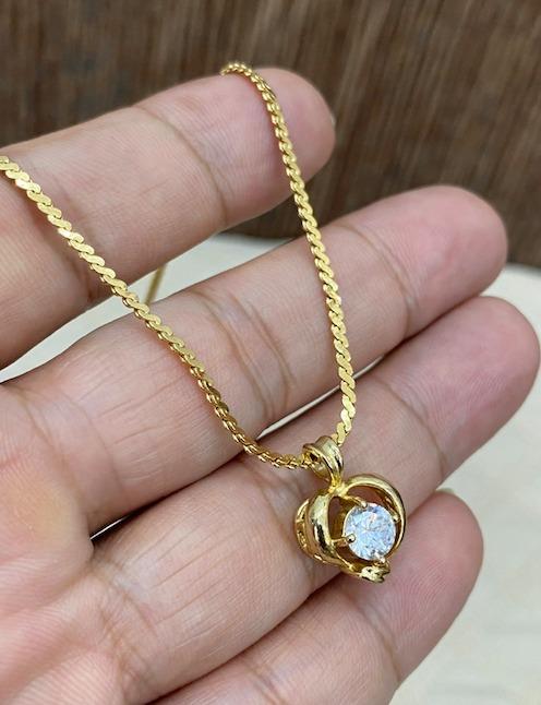 Dây chuyền Nữ si nhật mạ vàng, mặt trái tim đính viên CZ chói lóa