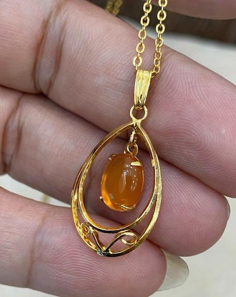 Dây chuyền Nữ thời trang si nhật mạ vàng, mặt đính viên hổ phách cực đẹp