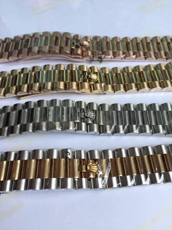 Dây đồng hồ Rolex cao cấp, size dây 20 và 21, mắt dây đúc, đầu ôm đúc, loại 3 và 5 hàng mắt, khóa dập logo nổi hình vương miện đặc trưng, chất liệu dây và khóa đều thép không gỉ, mạ điện bền màu. Có 4 màu: màu trắng, màu vàng hồng, màu vàng vàng và đờ mi vàng vàng. Mới 100%. Giá 600K. Lắp miễn phí tại Toà A2 - Ngõ 118 - Phố Nguyễn Khánh Toàn - Q. Cầu giấy - HN. LH Zalo, Viber, IMess 0913005846. Fanpage Đồng Hồ Đức Thuỷ. Web phutungdongho.vn
