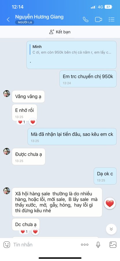 Chuyện là mình có mua sản phẩm giày từ tk này, đã bank full 950k vào ngày 7/11/2023