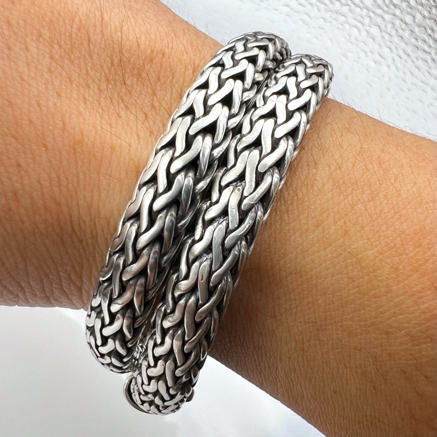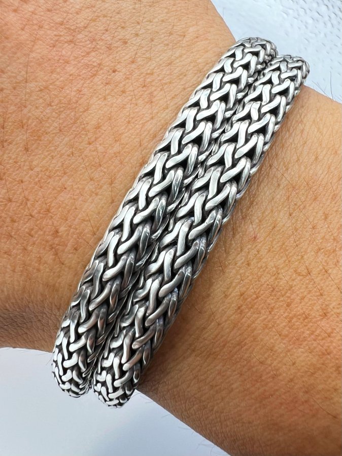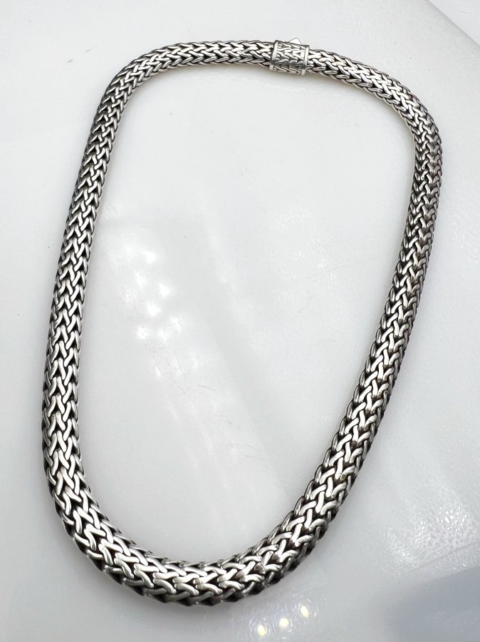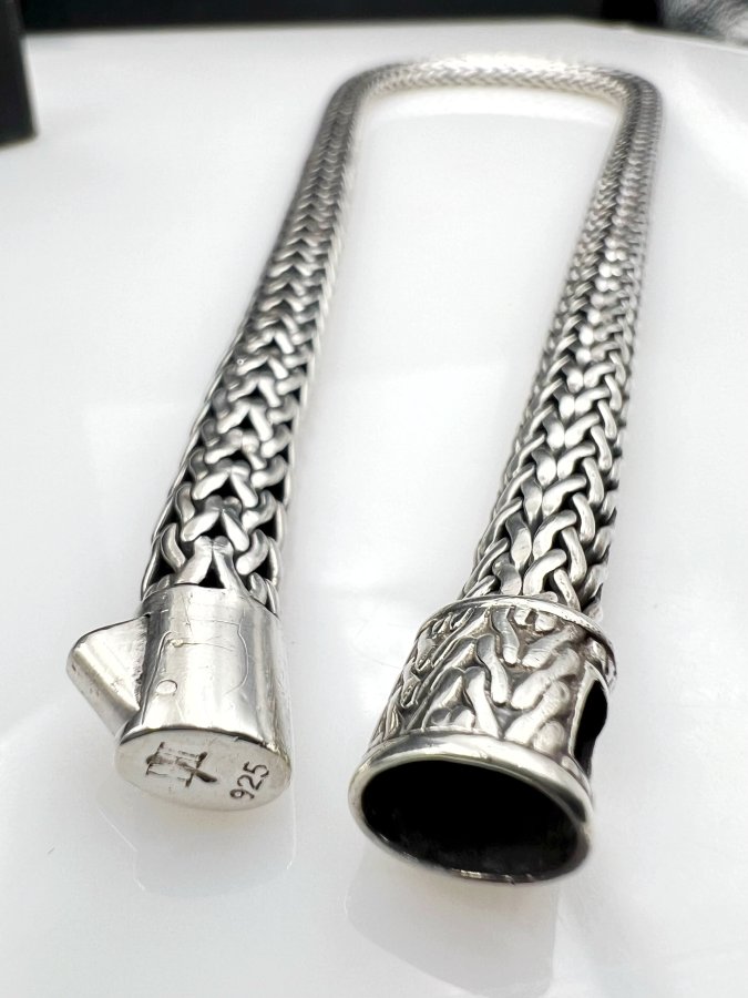 Dây lắc bạc 925 hiệu John Hardy phôm bự hoa văn ống tròn vảy rắn rất đẹp, đeo được 2 model (dây choker ôm cổ hoặc lắc nam quấn 2 vòng), dây dài 42cm - bản ngang 8mm, nặng 83.93gram (22.38 chỉ), giao thông 10tr5❤️ Thiên 0923.12.6789