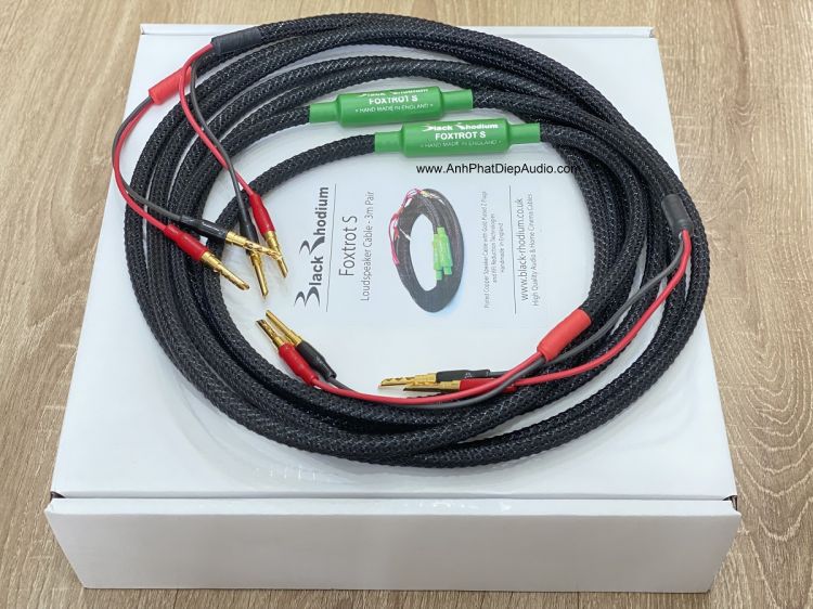 Cáp loa Foxtrot S được làm thủ công tại xưởng của Black Rhodium ở Derby tại England, thiết kế được dựa trên sản phẩm đoạt giải thưởng "Cáp của Năm", và nâng cấp hơn nữa bởi một lớp lưới sợi màu đen hấp dẫn giúp làm giảm rung động trên dây cộng thêm một lõi Ferrite cỡ lớn được gắn vào vị trí gần cuối đầu cắm loa.