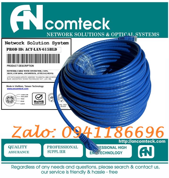 Thông số kỹ thuật dây nhảy cat6 Ancomtek dài 5m ACT-LAN-610BLD