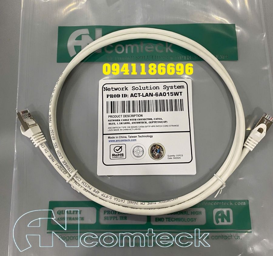 - Dây nhảy CAT6A 1.5M chính hãng được bọc kim chống nhiễu của Ancomteck vượt tất cả các hiệu suất yêu cầu của cáp Cat6A do TIA đưa ra.