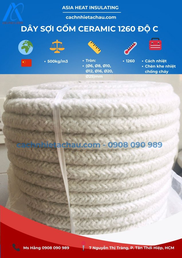 Dây sợi gốm ceramic, hay còn gọi là dây sợi ceramic, là một loại vật liệu cách nhiệt được làm từ sợi gốm. Loại dây này có nhiều đặc tính ưu việt như chịu nhiệt độ cao, cách nhiệt tốt và có khả năng chống lại sự ăn mòn từ các hóa chất.