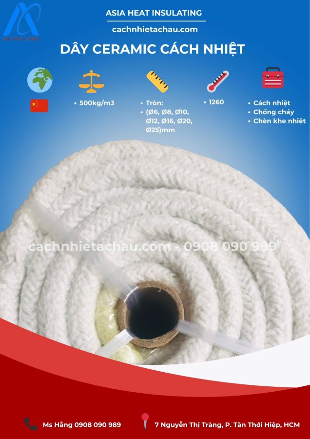 Dây sợi gốm ceramic, hay còn gọi là dây sợi ceramic, là một loại vật liệu cách nhiệt được làm từ sợi gốm. Loại dây này có nhiều đặc tính ưu việt như chịu nhiệt độ cao, cách nhiệt tốt và có khả năng chống lại sự ăn mòn từ các hóa chất.