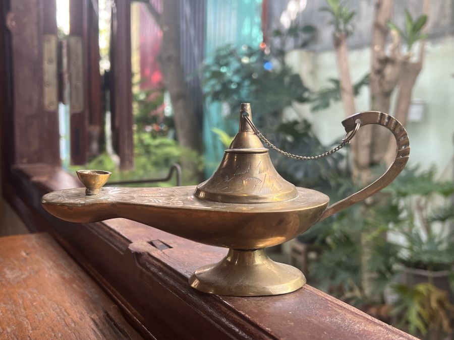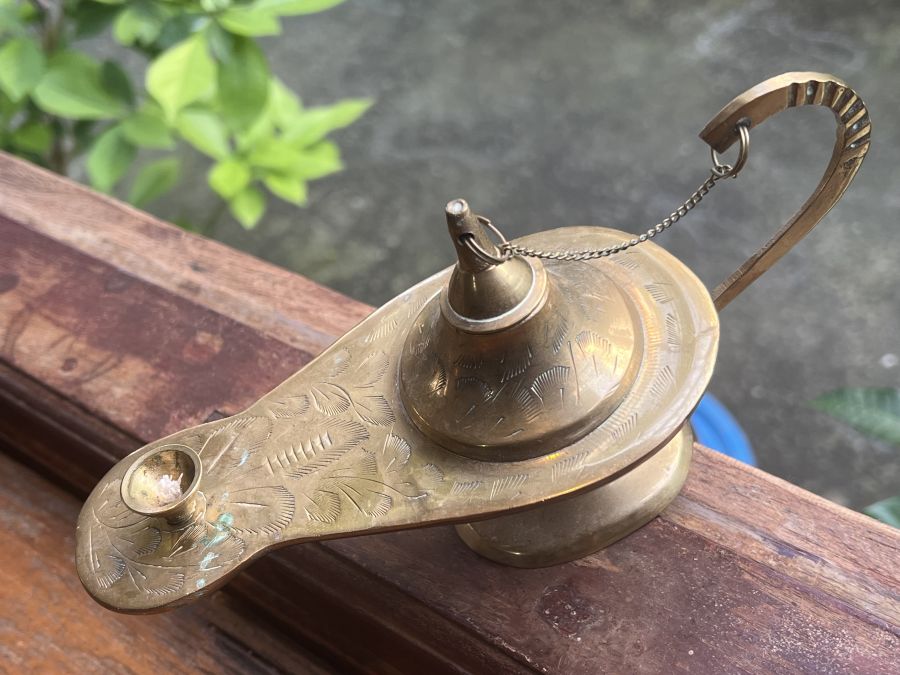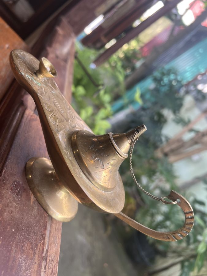 Aladdin và cây đèn thần 🙂 Chất đồng đúc, hoa văn mộc mạc Nắp nối với dây xích treo với quai đèn Ngang 20cm cao 10cm sâu 7cm Giá êm giao lưu cuối năm 950k bao ship Phụng 0934751920 Zalo Lạc