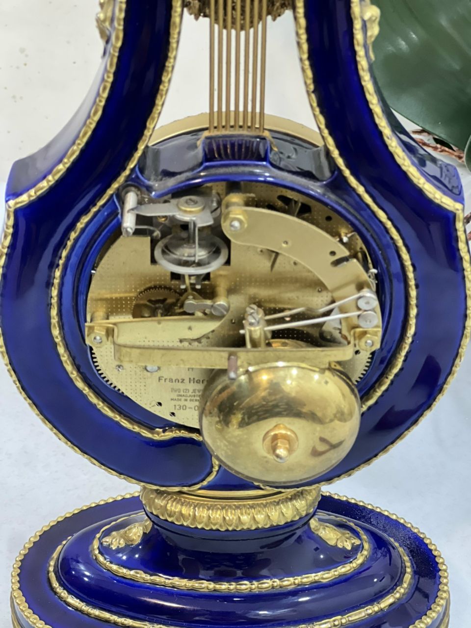 🌺Chất liệu: Sứ, Máy Đức Franz Hermle 2 chuông chén, chi tiết mạ vàng 24K, đính pha lê