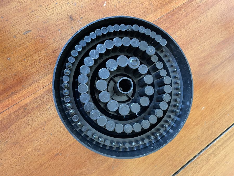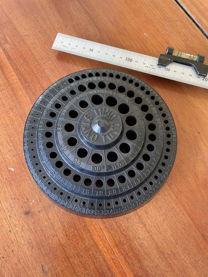 Bán 1 đế gắn mũi khoan Toyo bằng nhựa cứng rất dày dặn chắc chắn. Dụng cụ chứa được mũi từ 1-13ly, bước nhảy 0.1ly, còn rất đẹp