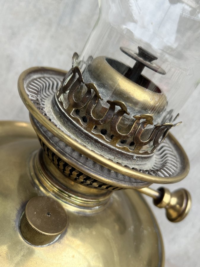 Toàn thân đồng thau + đế gang => vững chắc nặng tay, bầu đèn thiết kế theo kiểu dòng centrel draft với lỗ lấy khí ở giữa chân và bầu đèn, có nắp dầu riêng biệt thuận tiện sử dụng, có cục chặn lửa zin luôn.