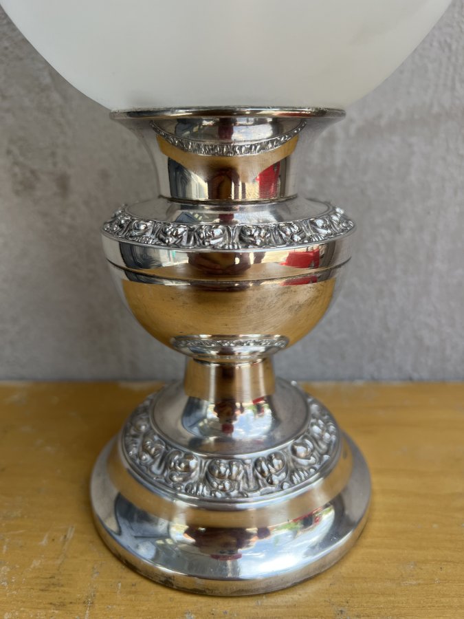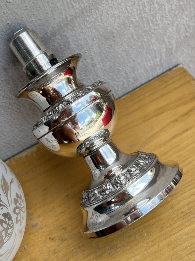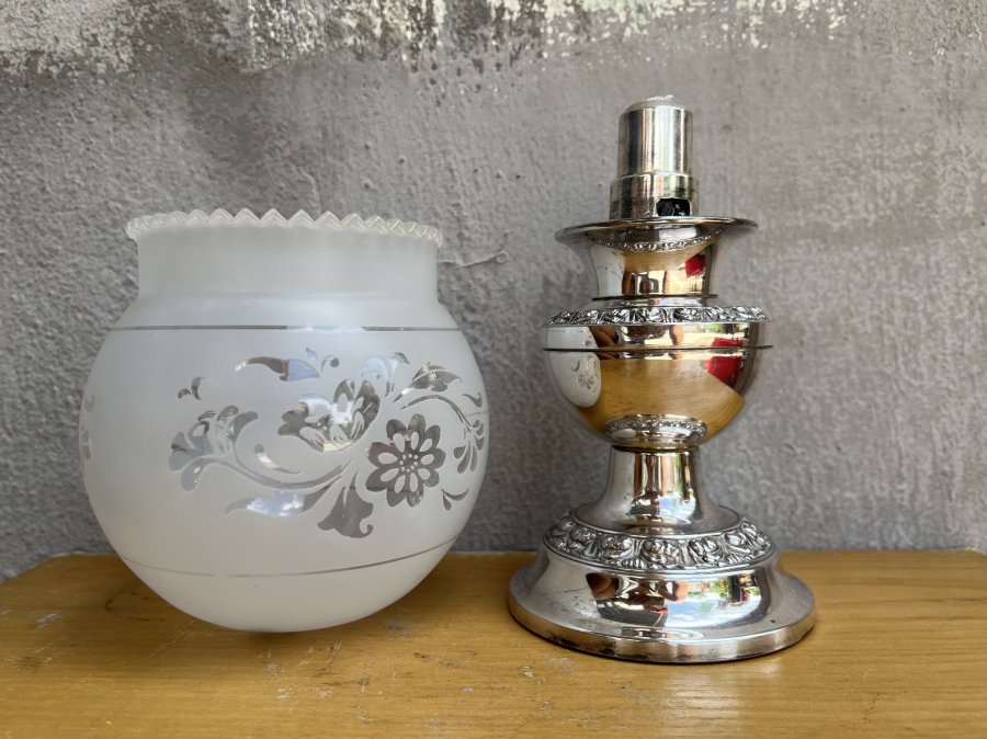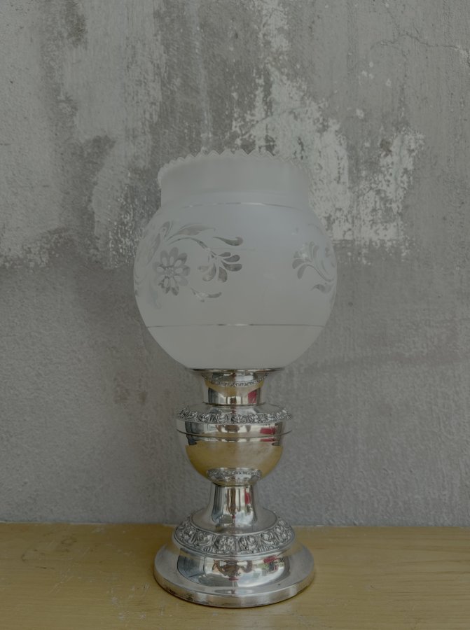 Chất liệu đồng mạ Bạc sáng loáng chói con mắt. Hoa văn viền rất tinh tế kết hợp với Lam bóng thuỷ tinh bầu hoa văn rất sắc nét và nghệ thuật với phần miệng nhún điệu đà mà dễ thương 🥰