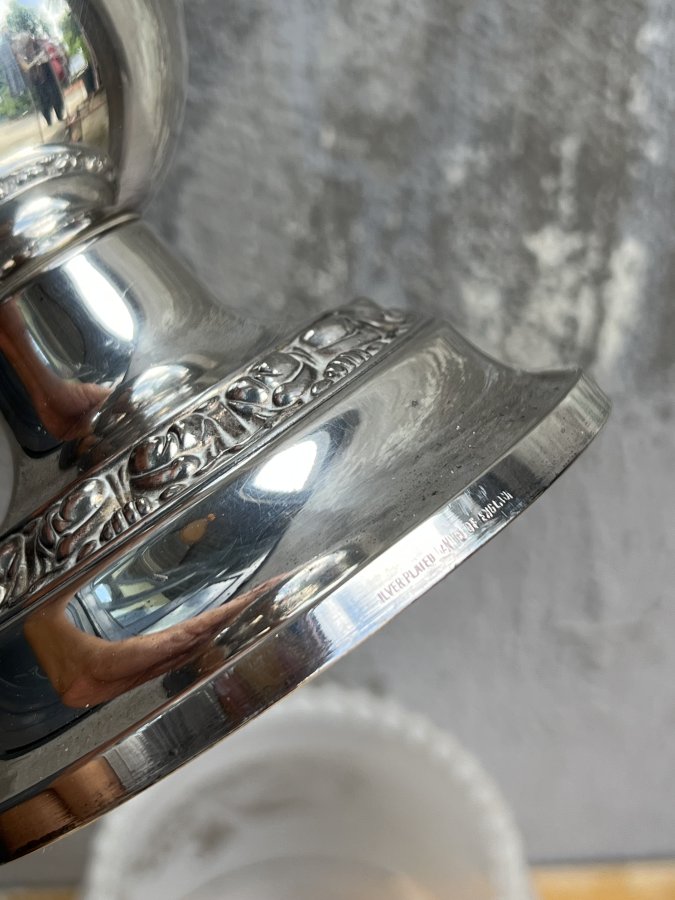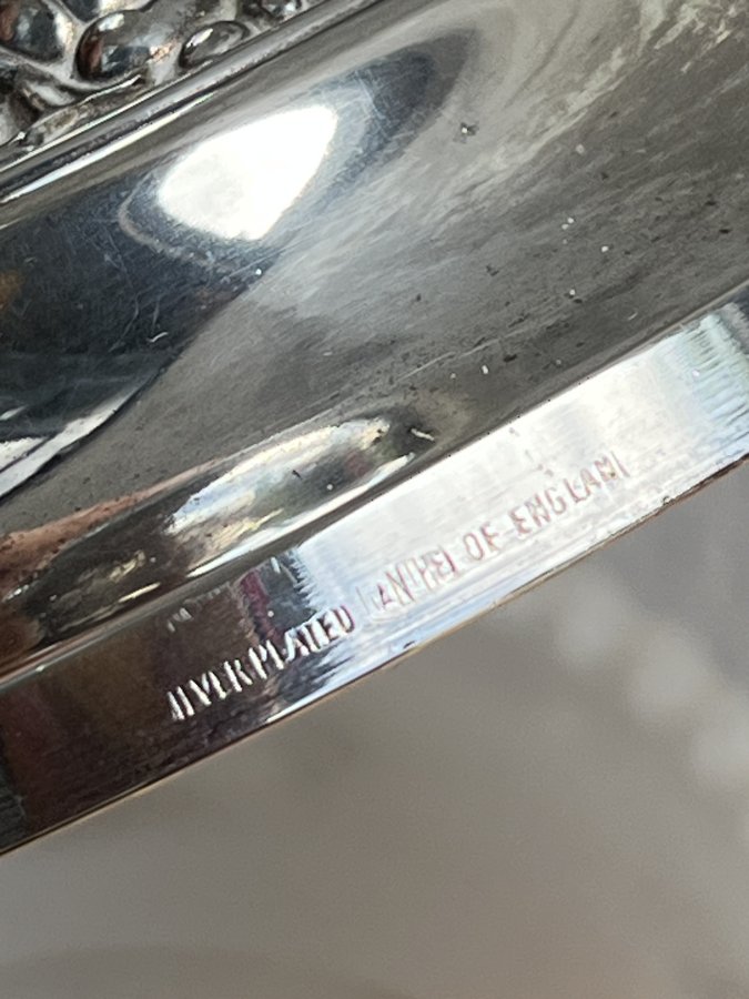 Mộc chữ rõ nét ở chân đèn Silver Plated Made in England.