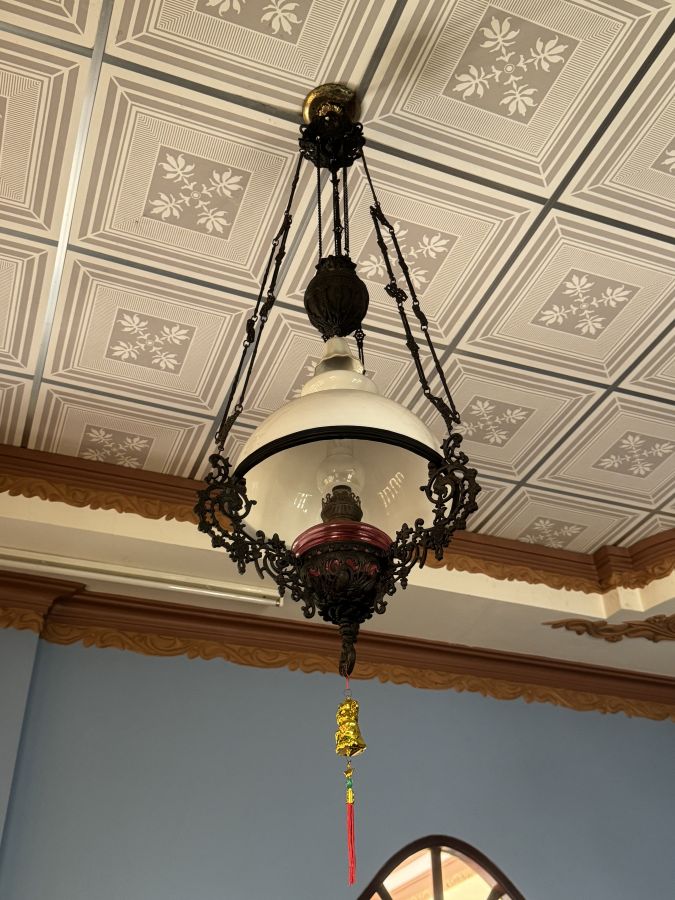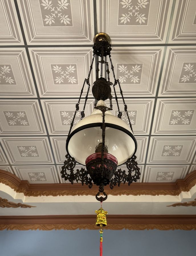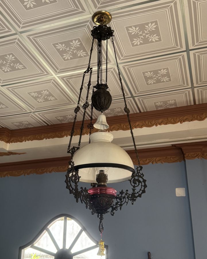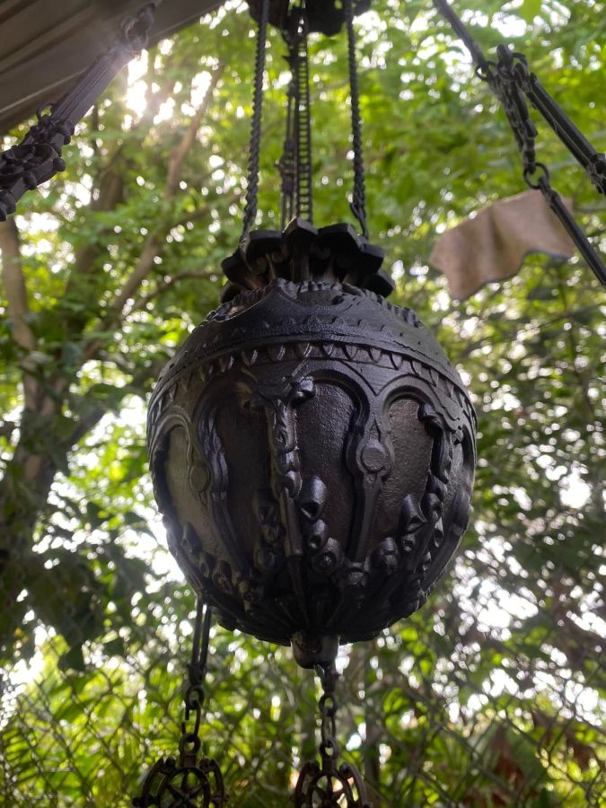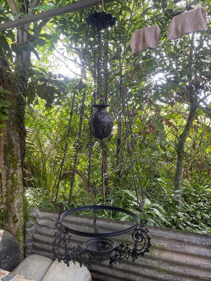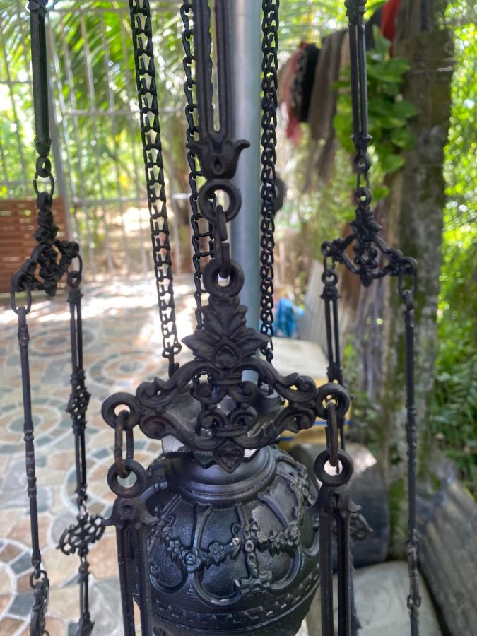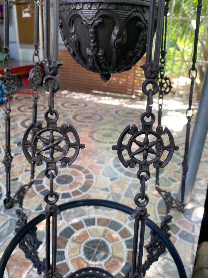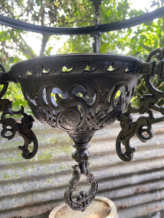 Đèn cổ ba dây Pháp hàng nguyên zin, chất liệu gang sắt thế kỷ 19.