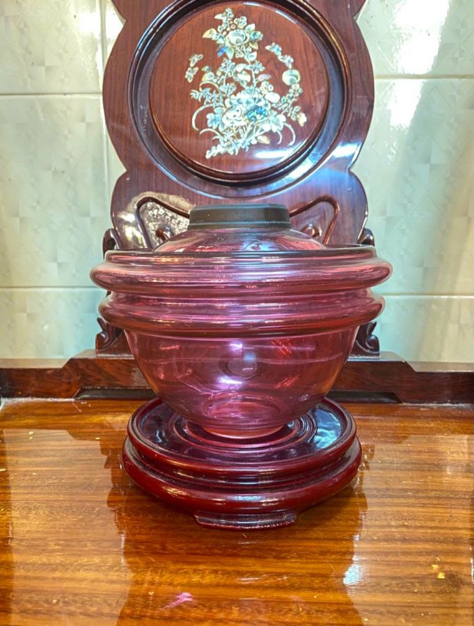 Tích hiếm nội địa Mai hoá Rồng, bầu đèn pha lê đỏ 18cm, đk lam 40 choá trái suông, chiều dài đèn 1,4-1,5m khi thu tạ, họng bóng 65 zin có logo. Đèn chuẩn cổ, lành tít mời anh em giao lưu.