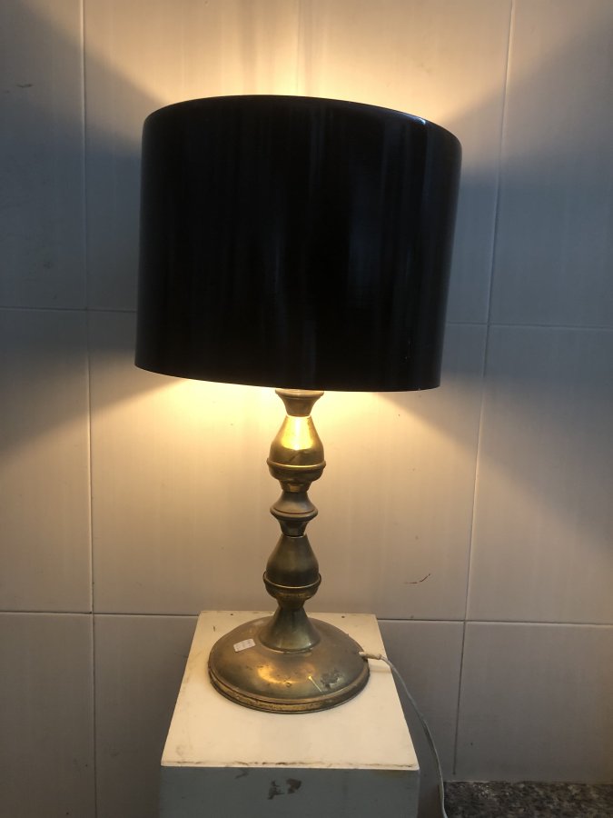 Đèn đồng trang trí không gian hoài cổ-Cao 58 cm -Chóa đèn bằng kim loại sơn đen, đường kính chóa 30 cm