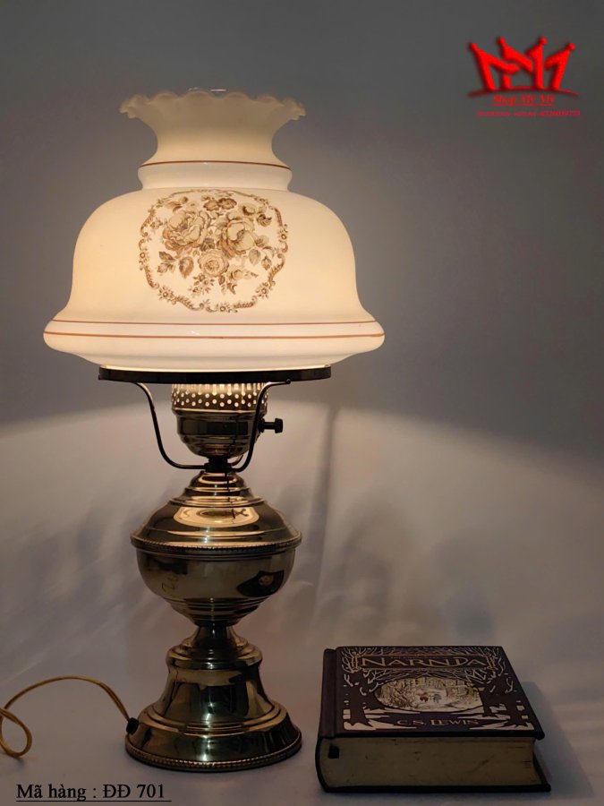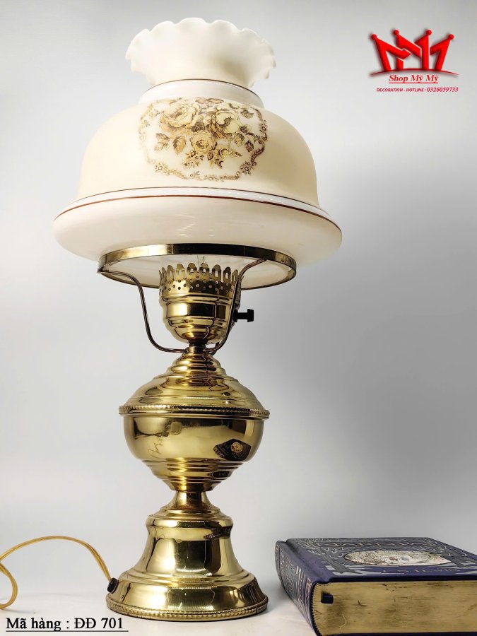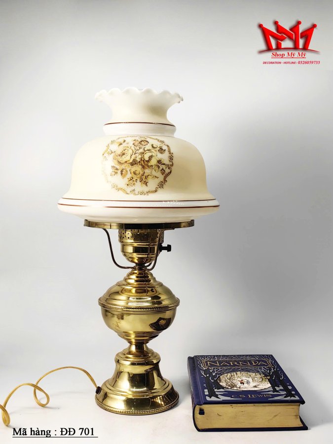Đèn bão Quoizel hoa vàng cổ điểnchaao đèn thủy tinh sữa 1978