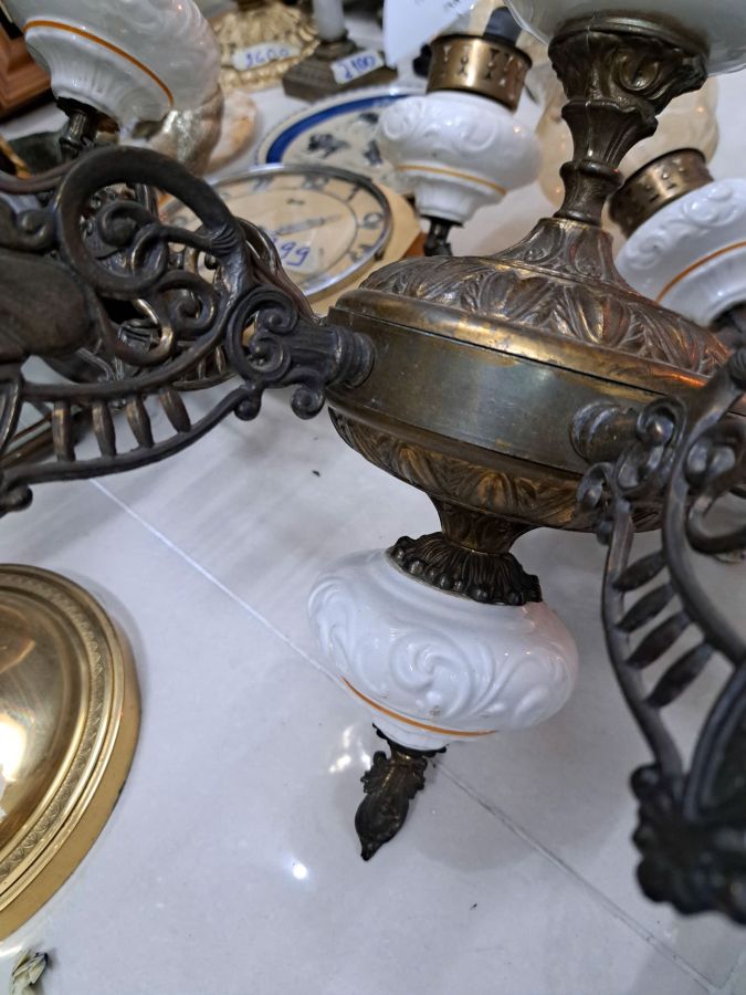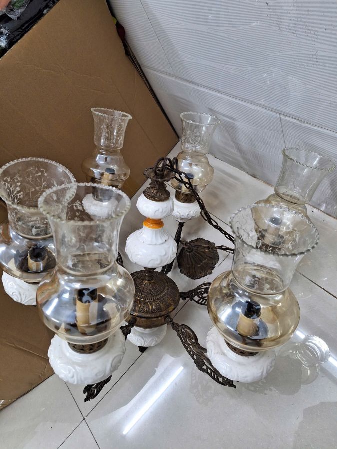 Đèn chùm Châu Âu bầu sứ đủ 6 lam
