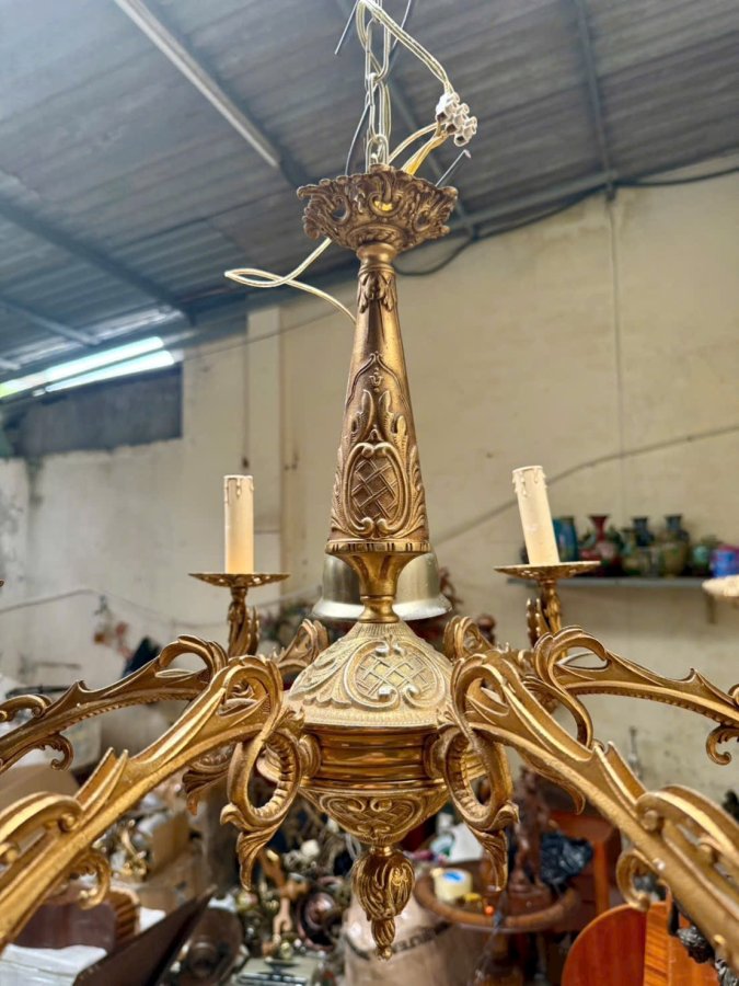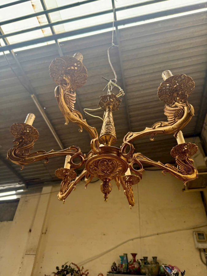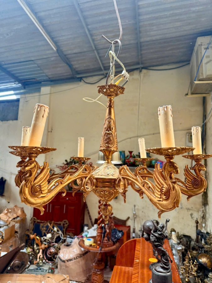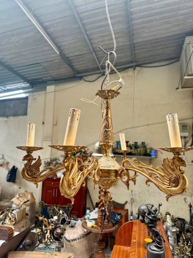 Một em đèn chùm của Pháp cực cổ Tất cả bằng đồng đúc cực nặng tay lắc kêu vàng hoa văn rồng châu âu cực nét và chi tiết đủ đồ tổng thể lành lặn anh em về có thể dùng luôn giá mềm Call:0333534345