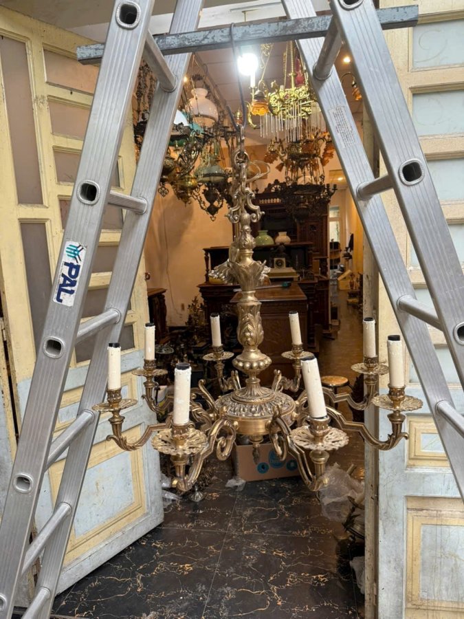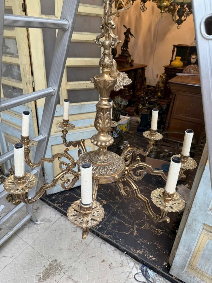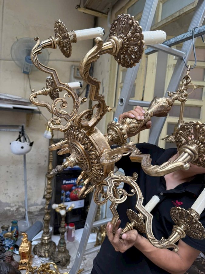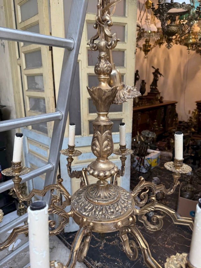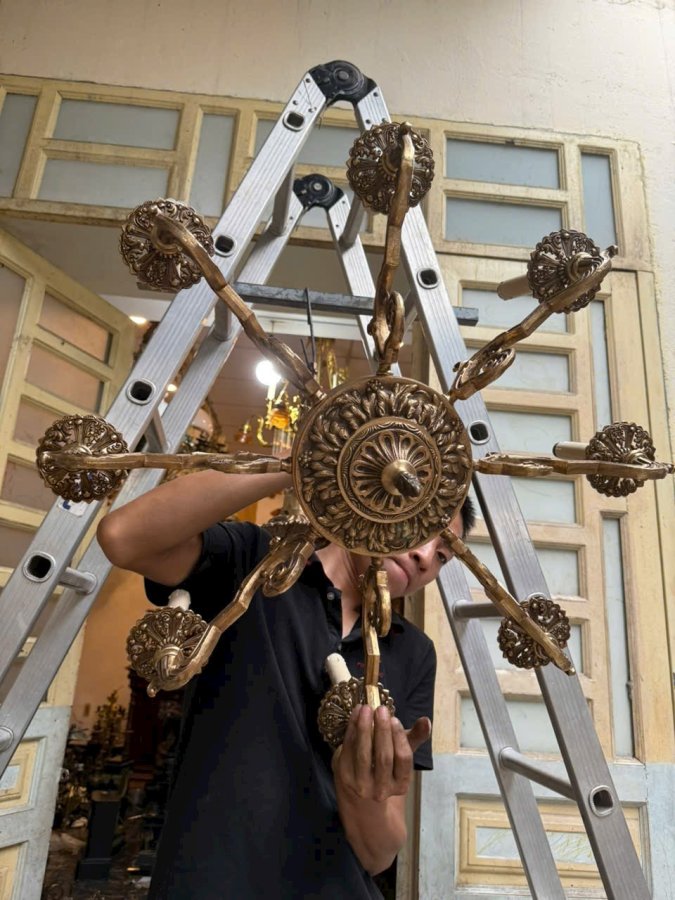 Em đèn chùm hàng Pháp cổ bằng đồng đúc cực kỳ nặng tay màu đồng cực kỳ đẹp hoa văn sắc sảo chi tiết không nứt gãy giá cực mềmCall:0333534345