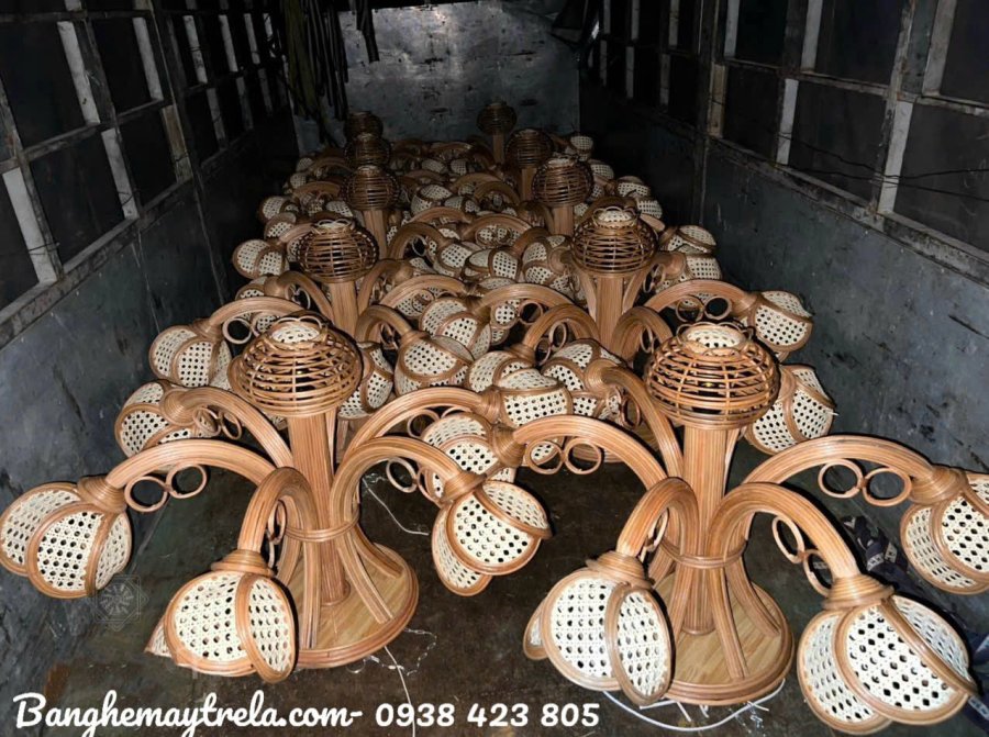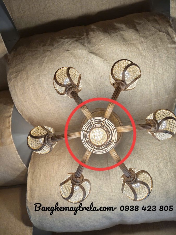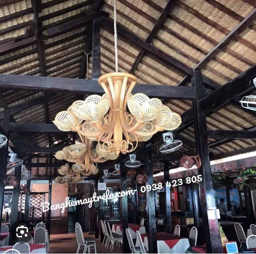 Được làm thủ công từ mây tre tự nhiên, đèn chùm thả trần mang vẻ đẹp mộc mạc nhưng tinh tế. Ánh sáng vàng dịu lan tỏa qua từng nan mây, tạo cảm giác thư giãn và sang trọng.
