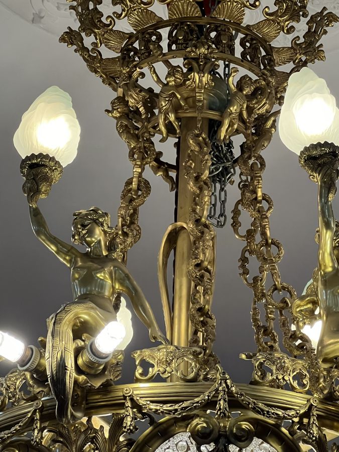 các bác rinh về chơi tết thôi akDành cho không gian nhà rộngSâu 1,5m / Ngang 1,1mToàn bộ bằng đồng đúc kết hợp hạt pha lêMột tác phẩm đèn chùm rất đáng để sưu tầm