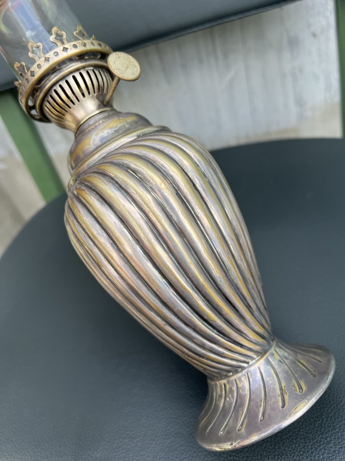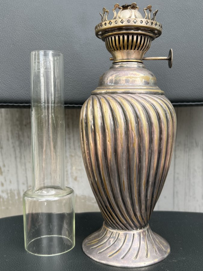 Chất đồng dày cui và rất nặng, đầm tay. Có mộc chữ ở Chân đèn và Bóng thuỷ tinh