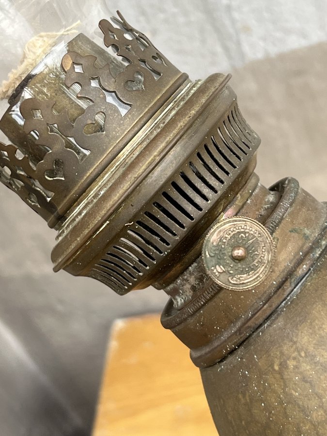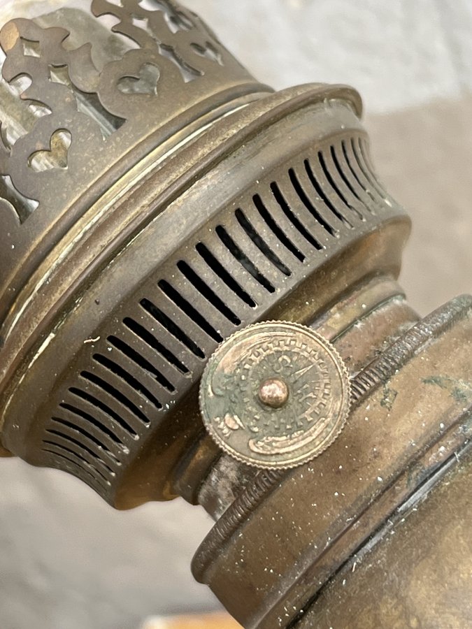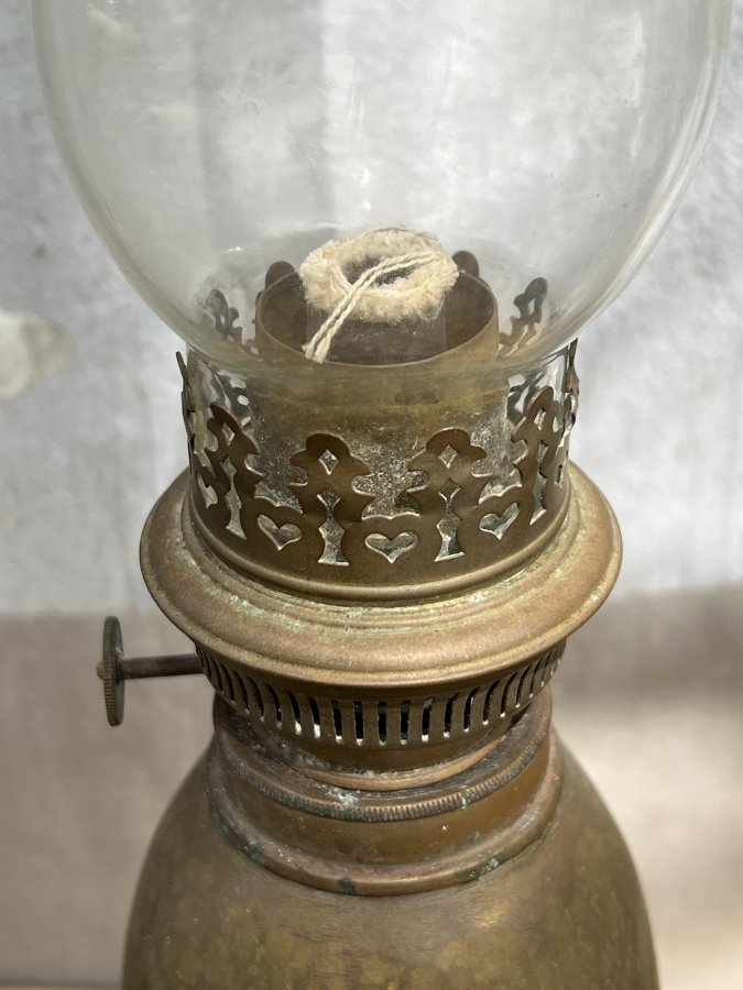 Dáng gò rất đẹp chuẩn dáng đèn, trên thân đèn trang trí vế búa độc đáo