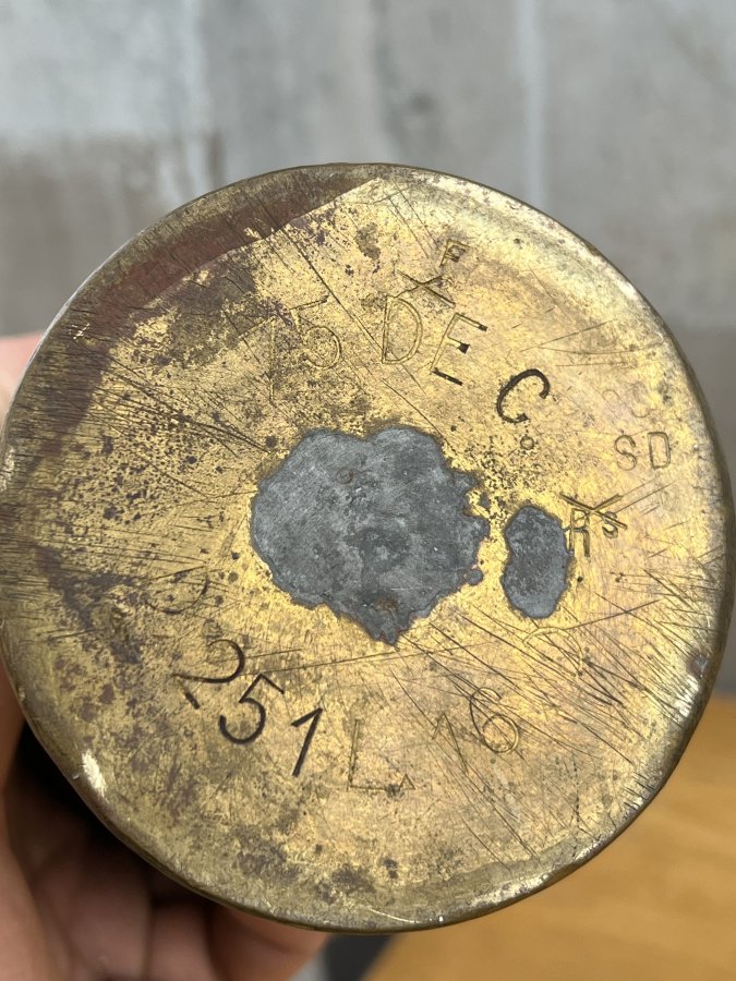 Chất đồng vỏ Pháo dày nặng với ký hiệu ********** dưới đáy SX 1916