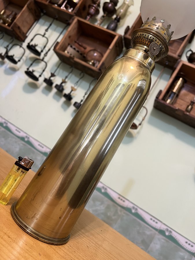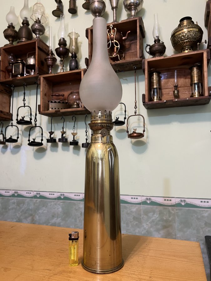 Em giao lưu đèn dầu cổ được chế tác thủ công từ vỏ Pháo 13PR của ANH QUỐC sx 1917 thế chiến I (ww1 1914-1818)