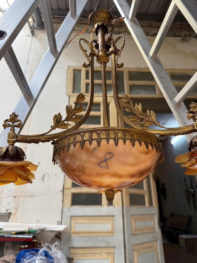 Đèn treo trần đá núi lửa phối đồng hàng cực nặng.Đá già hoa văn sắc nét,phối lam màu.lam có mẻ chút ít.Giá:8trCall:0333534345